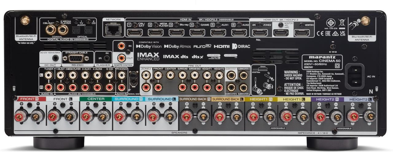 CINEMA 50 - это высококачественный 9,4-канальный AV-ресивер с универсальными функциями, для ценителей качественной музыки и кино - захватывающий, с богатыми звуковыми характеристиками и яркой динамикой, оснащенный домашним кинотеатром creation. Он обеспечивает мощность до 110 Вт на канал, легендарный Marantz-performance, шесть HDMI-входов с поддержкой 8K UHD, потоковые сервисы HEOS, коррекцию помещения Audyssey MultEQ XT32, технологии Dolby Atmos и DTS: X, Auro 3D, а также обширные интерфейсы ввода и вывода, включая выходы предусилителя на каждом канале, а также четыре независимых выхода на сабвуфер.