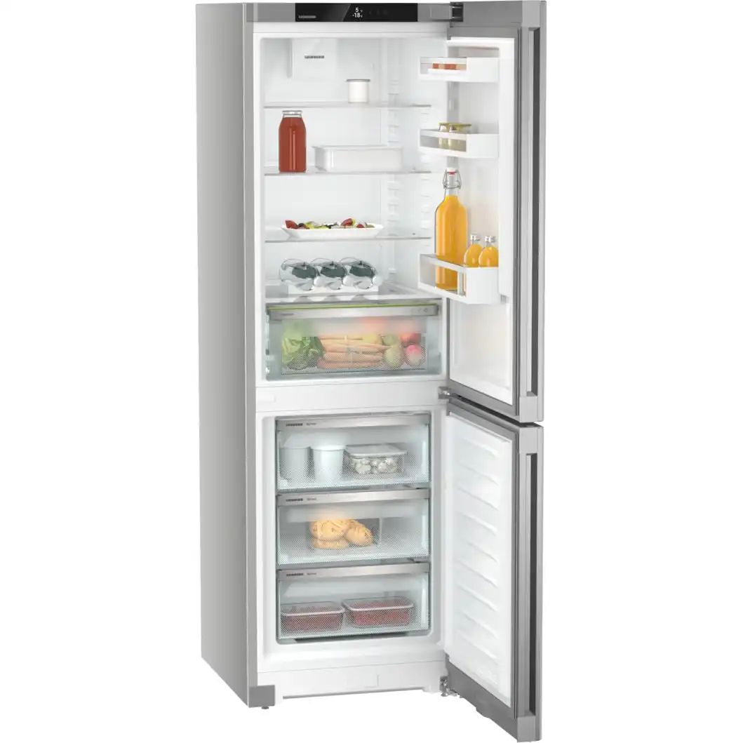 LIEBHERR CNsff 5203-22 001 Pure создан для тех, кому важны вместительность, экономичность и продуманная эргономика. Технологии серии BluPerformance ориентированы на эффективное охлаждение при низком уровне шума, удобство обслуживания и современный внешний вид с отделкой SteelFinish. Внутреннее пространство организовано так, чтобы быстро находить продукты и легко менять конфигурацию полок.
