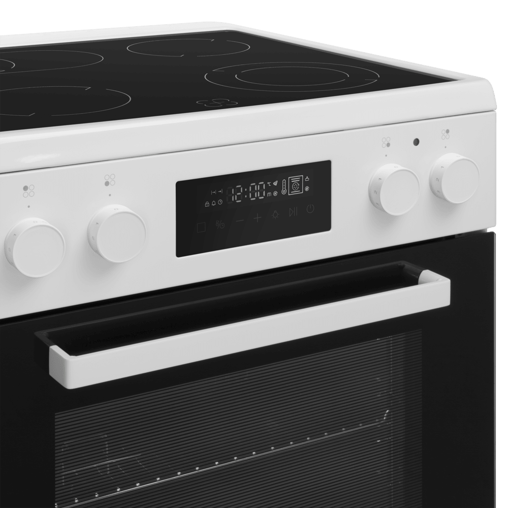 Электрическая стеклокерамическая плита MAUNFELD MEC611CW09TD — практичное решение для тех, кто хочет получить полноценную духовку и удобную стеклокерамическую поверхность в едином корпусе. Модель сочетает лаконичный белый дизайн и продуманную эргономику: понятные переключатели, дисплей и электронный таймер помогают легко контролировать процесс готовки.