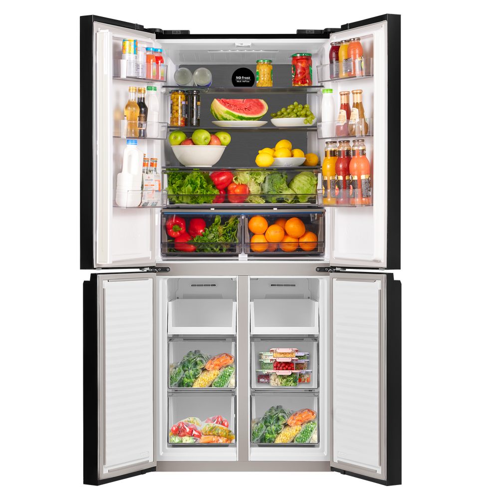 Холодильник Cross Door NO FROST с инвертором MAUNFELD MFF183NFBE создан для тех, кто ценит простор и удобство управления. Формат Cross Door с четырьмя дверцами упрощает доступ к полкам и ящикам, а продуманная организация отделений помогает поддерживать порядок.