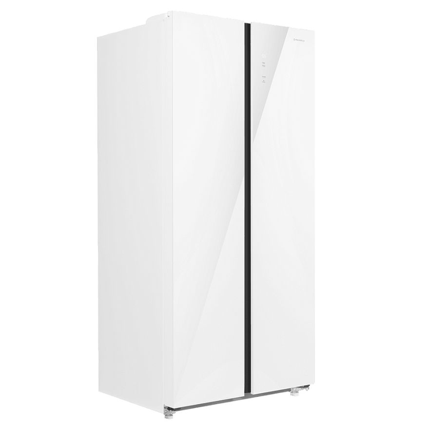 Материал фасада - стекло, что придает ему современный и стильный вид. Внутренняя подсветка выполнена на светодиодах, что обеспечивает яркое и равномерное освещение. Дверной упор может быть установлен как справа, так и слева, что упрощает использование холодильника в различных условиях.