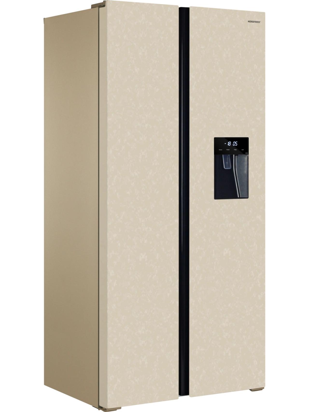 Отдельностоящий инверторный холодильник NORDFROST RFS 484D NFYm типа Side-by-Side с общим объемом 472 литра идеально пойдет для большой семьи и крупногабаритных кухонь.