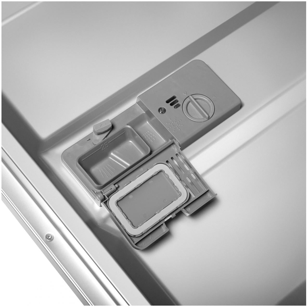 Особенности конструкции - внутренняя поверхность из нержавеющей стали, дисплей, использование средств 3 в 1, подсветка камеры, регулируемая по высоте корзина для посуды, таймер отсрочки