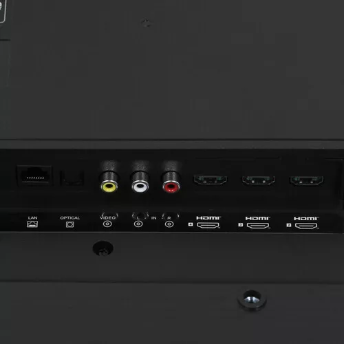 Аудиосистема мощностью 30 Вт с поддержкой Dolby Atmos не требует подключения сторонней акустики. Безрамочный дизайн, подставка по бокам, VESA 300×300 мм.