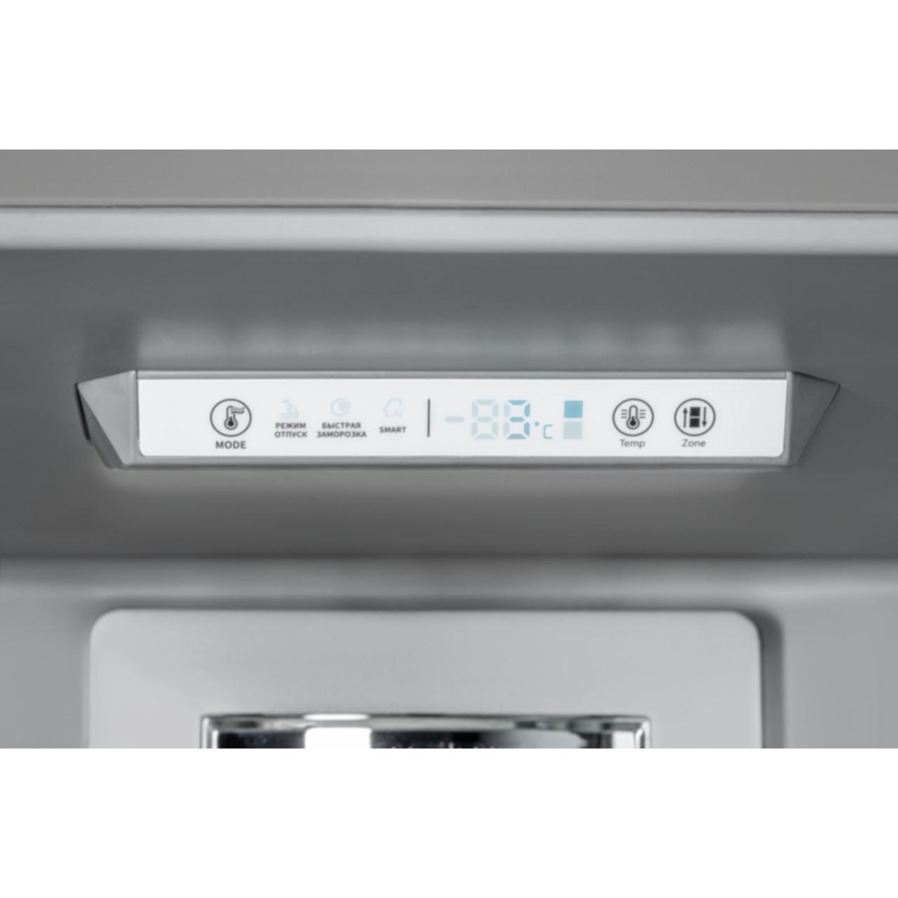 Прибор оснащен электронной панелью управления, расположенной внутри холодильной камеры. Легким нажатием на сенсорные кнопки можно регулировать температуру или выбирать необходимый режим работы.