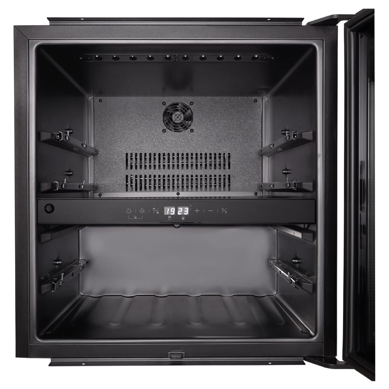 Стеклянная дверца с двойным остеклением обеспечивает не только эстетический вид, но и защиту вина от вредного воздействия солнечных лучей. Внутреннее пространство шкафа оснащено деревянными полками, способными вместить до 30 бутылок вина. Полки регулируемые, что позволяет размещать бутылки различных размеров. Подсветка внутреннего пространства выполнена светодиодами, что обеспечивает равномерное освещение и подчеркивает элегантность винного шкафа. Он станет незаменимым помощником для любителей вина, ценящих качество и удобство.