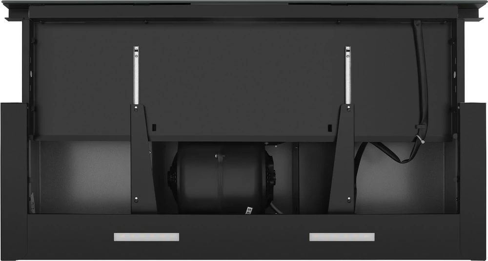 Особенностью данной модели является наличие выдвижной панели, что увеличивает эффективность работы и облегчает управление устройством. Управление осуществляется с помощью сенсорных переключателей. При этом доступно 4 скорости работы, что позволяет подбирать оптимальный режим в зависимости от интенсивности приготовления пищи.